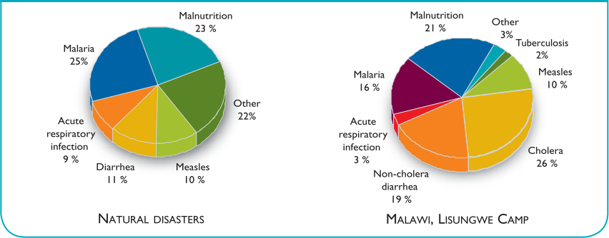 Five leading medical problems have consistently been identified as the major causes of mortality in post-conflict or post-natural disaster settings among vulnerable populations (Box 5).