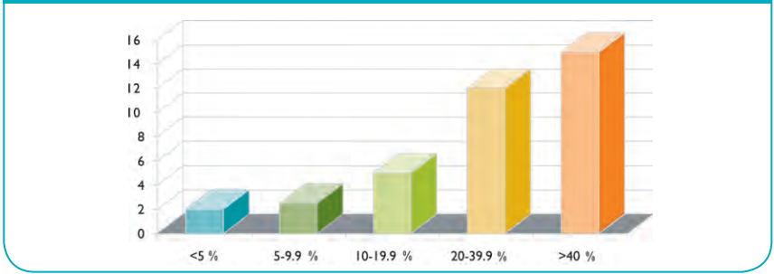 Malnutrition, although not identified as a significant immediate cause of death, is the most important factor correlated with high mortality rates due to transmissible diseases. A study including 41 displaced populations (Figure 8) showed a clear correlation between the crude mortality rate (that is, death from all causes) and the prevalence of malnutrition.