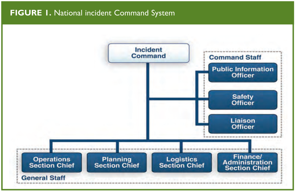 The response mechanisms will have specific characteristics depending on the size of each community and the particular risks that threaten it. The coordinators in hospitals, rescue services, and emergency medical services, as well as the participants processing the incoming information, should report to an incident commander who will direct the local emergency plan (Figure I). For incidences involving multiple jurisdictions and agencies, a unified command system may be established in which individuals designated by their jurisdictions work jointly to determine priorities, resource allocation, and strategies needed to execute the emergency plan. A coordinated emergency response between various levels of local, state, and federal government may be needed, in addition to non-governmental agencies providing humanitarian aid.